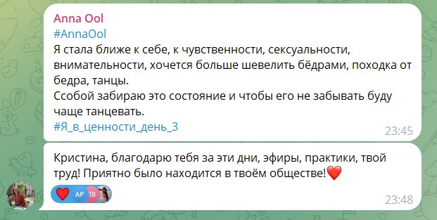 🔹 Telegram-чат → здесь будут дополнительные задания, голосовые и поддержка, чтобы ты не просто слушала, а реально проживала изменения