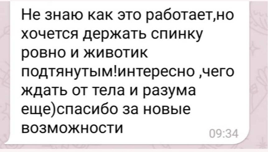 Ты получила 15 минутный урок со специальными упражнениями на эмоциональную разгрузку, раскрытие грудного отдела и укрепление пресса, который позволят тебе вернуть бодрость, здоровую осанку и подтянутый живот всего за 20 минут в день.